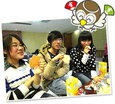 吃着从日本带去的点心,喝着茶,加深了交流。