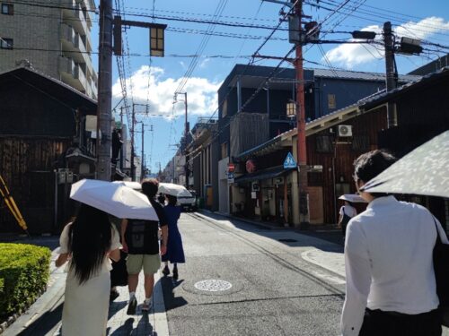 日本語を学んでいる時、先生から「日本の街道は比較的に狭い」と聞いたことがありましたが、実際に京都の東山区に来てみると、まさにその通りでした!しかし、狭いという特徴だけでなく、私は「静けさ」も感じました。