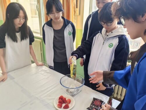イベントは当日午後3時、延吉高等職業学校の会場で時間通りに始まりました。まず、延辺ふれあいの場のボランティア学生が日本の大福について詳しく解説しました。学生たちは、大福が日本の代表的な和菓子である由来と民間の祝祭や日常の食生活との関わりについて説明し、各地域で派生した特色のある味や形状まで生き生きと紹介することで、参加者は大福を通して日本の食文化を深く理解しました。同時に、学生たちはビデオを使い、大福の作り方を順番に説明しました。練り方のコツ、あんこやイチゴなど定番の餡の配合比率、包む際に形を整えて食感をモチモチに保つ細かいポイントまで、丁寧に詳しく説明し、その後に行われる参加者によるデモンストレーションに向けて準備を行いました。