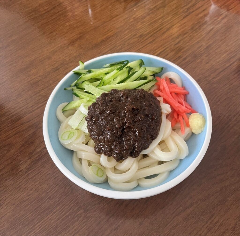 私は先日実家に帰省した際の一枚を挙げます。これは私の地元である岩手県盛岡市の郷土料理の「じゃじゃ麺」です。独特の塩味とコクのある肉味噌に、麺、きゅうり、ネギ、紅生姜、生しょうがを絡めて食べます。少しクセがある味なので一度食べただけではおいしさが伝わりにくく、有名でありながらも何度も食べることでおいしさをより実感できるマニアックな盛岡のソウルフードです。ちなみに私も高校生まで苦手でした…(笑)