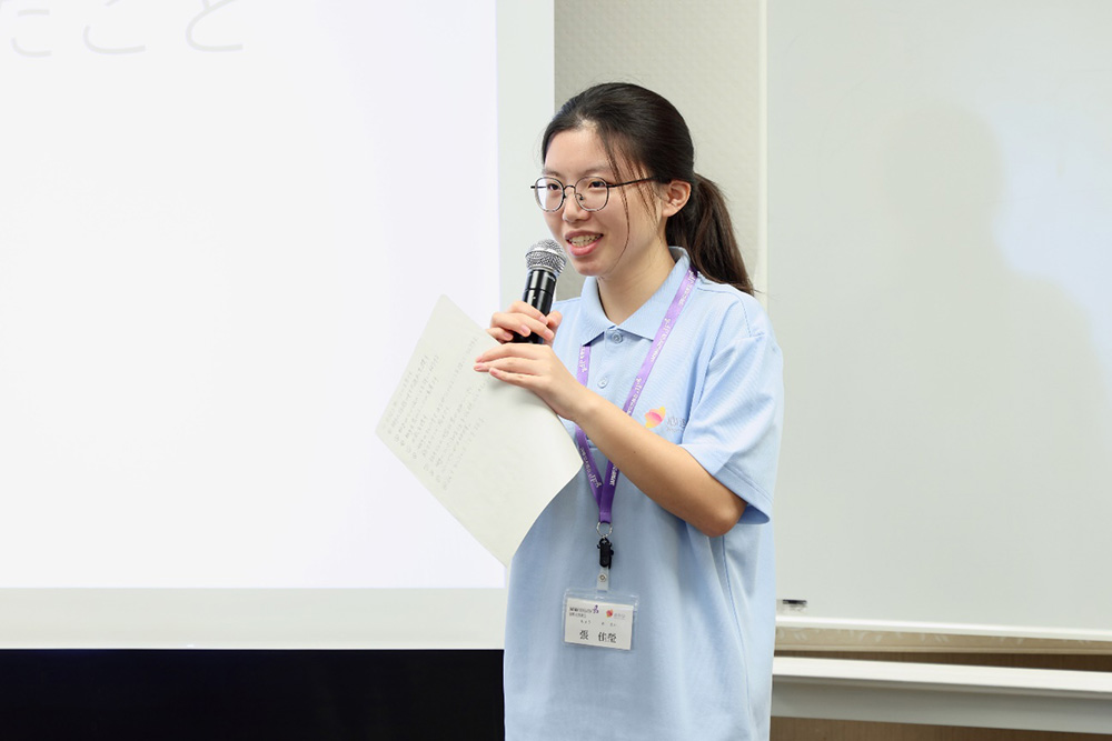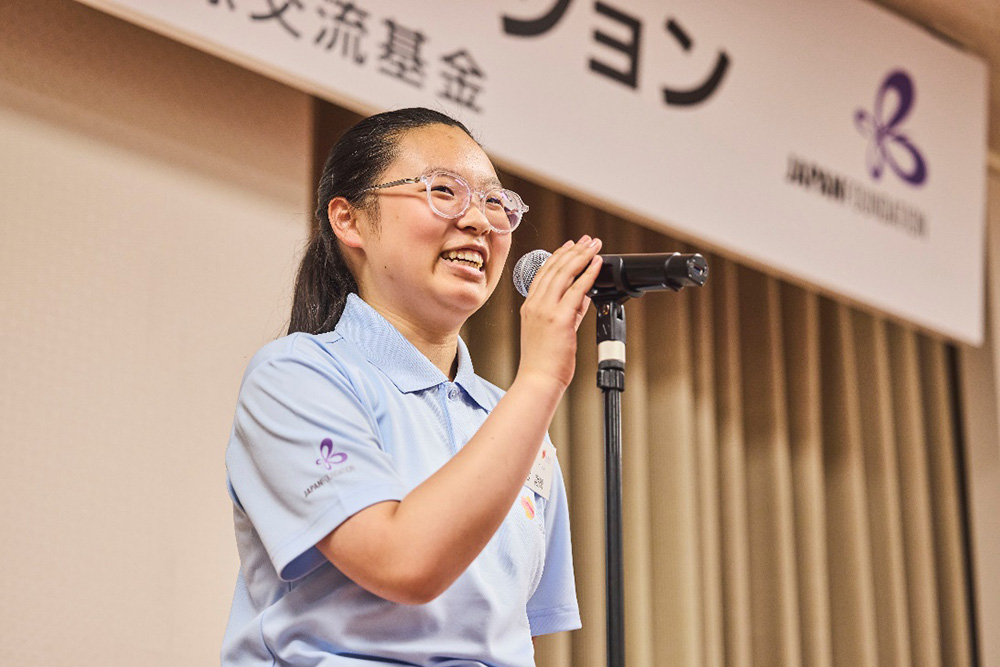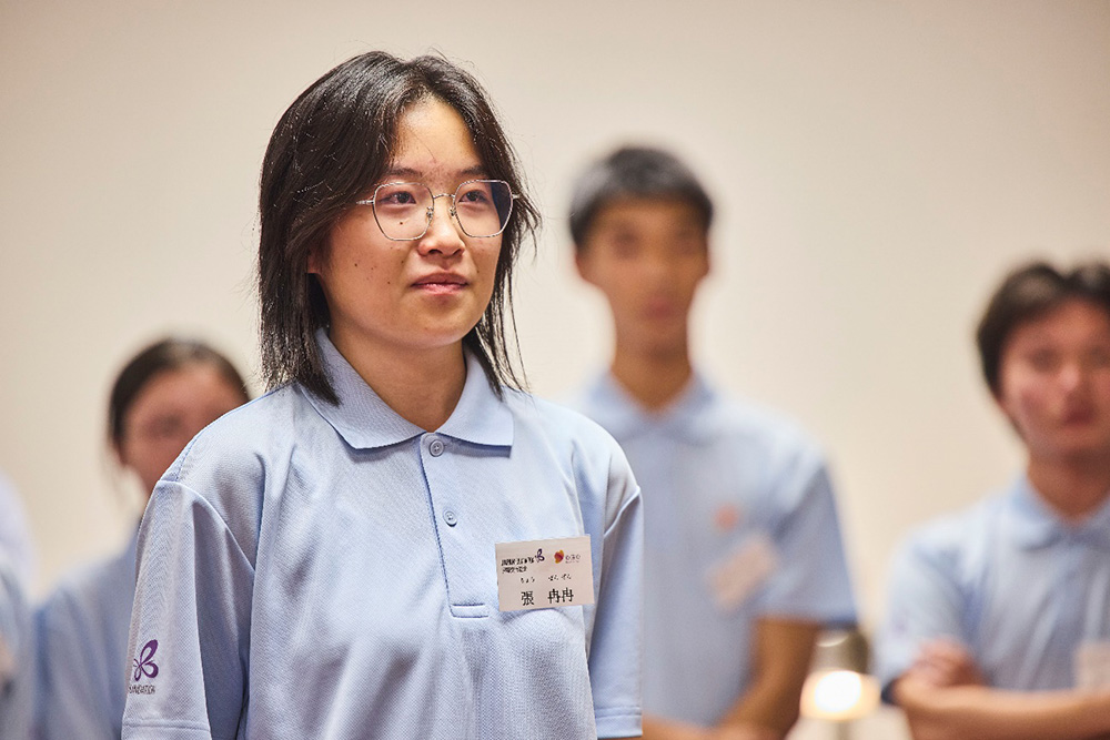 来自四川省成都市的雍子璘同学是在德岛县阿波市的高中留学。她说她来到日本之后,意识到自己以往在国内对于学习一直都抱着被动的态度。她体会到了积极性的重要性,主动寻求机会尝试了人形净琉璃、蓝染和三味线等各式各样的事物,并由此掌握了自学能力。同时她也学到,即便在价值观等方面存在诸多差异,只要重视共情,就能相互理解。此外,她还意识到制定目标的重要性,而这是他在国内时没有的习惯。