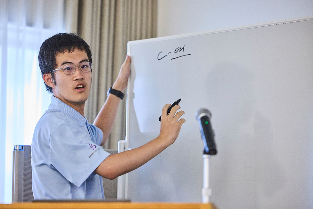 北海道的民族和历史,以及留学期间积极参与的化学实验。关于化学实验,他首先使用化学式对醇类的分类和卢卡斯试剂等进行了说明,然后总结道:“在学习方面,爱是第一原动力。人在做自己喜欢的事时最有效率。另外还需要努力。我今后会继续好好学习化学,也希望今后能从事与北海道、日本和中国有关的工作。”