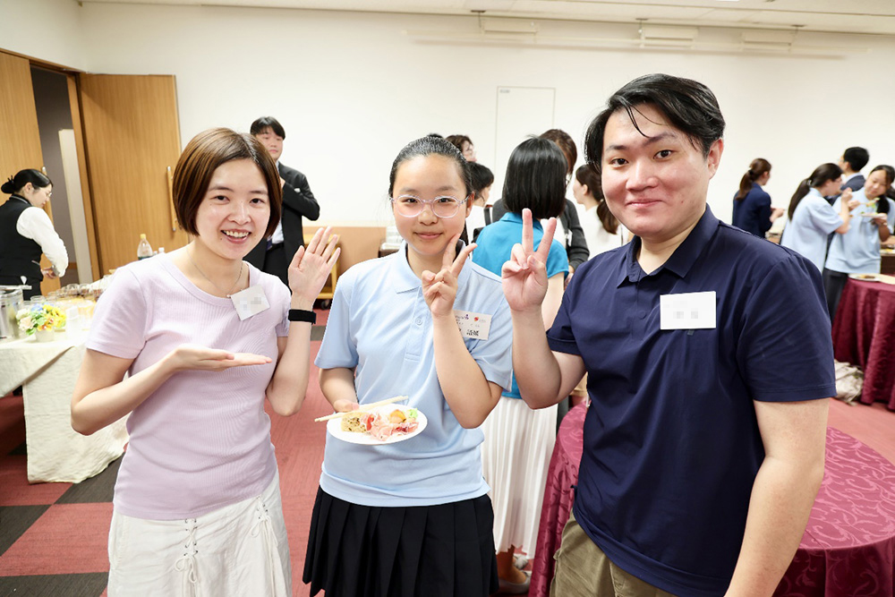 来自四川省成都市的高钧裕同学是在三重县津市留学。在招待会上,高同学与寄宿家庭的细石夫妻以及同样曾在细石家寄宿的心连心项目毕业生们一起度过了其乐融融的“阖家欢”时光。