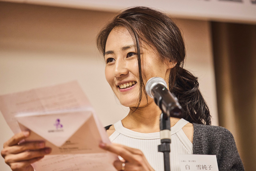 白同学曾于2007至2008年作为心连心的第2期学生前往京都的高中留学。她收到了自己在17年前回国时写给未来的自己的信,并作为毕业生代表发表了致辞。“我现在芝加哥大学担任心理学准教授。心连心项目不仅为我的职业发展奠定了基础,更彻底改变了我看待世界的方式。我在东京大学攻读了教育社会学,又在普林斯顿大学攻读了心理学与公共政策专业,目前正致力于研究人类与人工智能的刻板印象、偏见以及移民问题。但我始终认为,任何论文和理论都比不上在高中与大学里学到的知识。希望大家也能将心连心留学经验转化为塑造未来人生的全新视角。衷心祝福大家今后前程似锦。”
