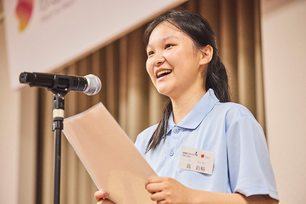 最后由高钧裕同学代表留学生发表了感言。“刚到日本时,我感觉自己像一张白纸,被五彩斑斓的环境所包围。周末也特意陪我练习朗读的高中老师、每天跟我说‘加油’的寄宿家庭的妈妈、和我一起吃火锅的爸爸,还有包容我蹩脚日语、对我友善相待的同学们等等,我得以与这些温暖的人建立起深厚的感情,并成为促进中日友好的小小使者。这一年的经历是非常珍贵的宝物。我会永远铭记这份跨越国界的理解与感动,并将与大家相识相知的故事告诉更多人。”