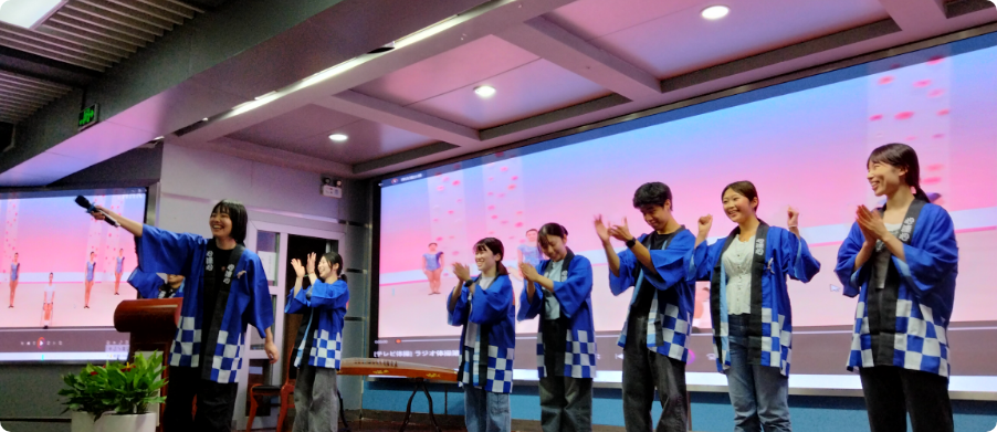我以助教的身份参与了一年级和二年级学生的日语课。课堂上,我介绍了日本的夏季庙会,并分享了日本大学生打工和志愿服务的经历。由于中国大学生中几乎无人有打工或志愿服务经验,同学们都听得津津有味。