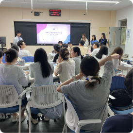 发表途中学校突然停电,学生们紧急分组改用手机进行发表。正因如此,与中国学生的距离得以拉近,也让课堂氛围变得更加活跃。