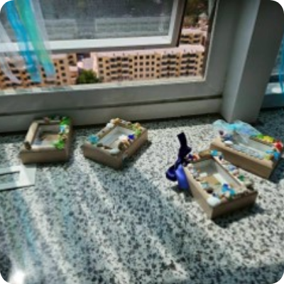 作为传统工艺组的一员,从构思内容、试做到采购材料,我都全程参与,无论是准备阶段还是活动当天都非常顺利。当天交流时,有中日交流之窗的参与者给我看了以海洋为主题创作的作品,乐在其中的样子让我感到非常开心。也很高兴能和西宁的学生成为朋友。