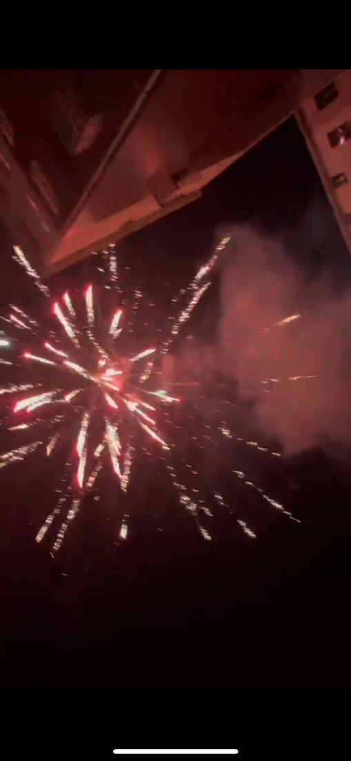 放烟花也是中国传统的春节习俗之一,寓意是驱邪避祸,迎接新年的到来。当烟花绽放在空中的那一瞬间,真的是美极了(照片③)!